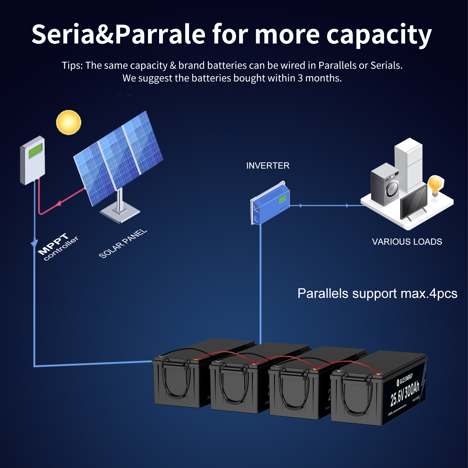 - ADVANCED TECHNOLOGY - GLCE ENERGY 25.6V 300Ah LiFePO4 battery made from Class A cells, safe, non-toxic and renewable. Compared with sealed lead-acid batteries, LiFePO4 lithium batteries are lightweight, compact, have a longer life, higher energy density, more safety and cost-effective benefits.