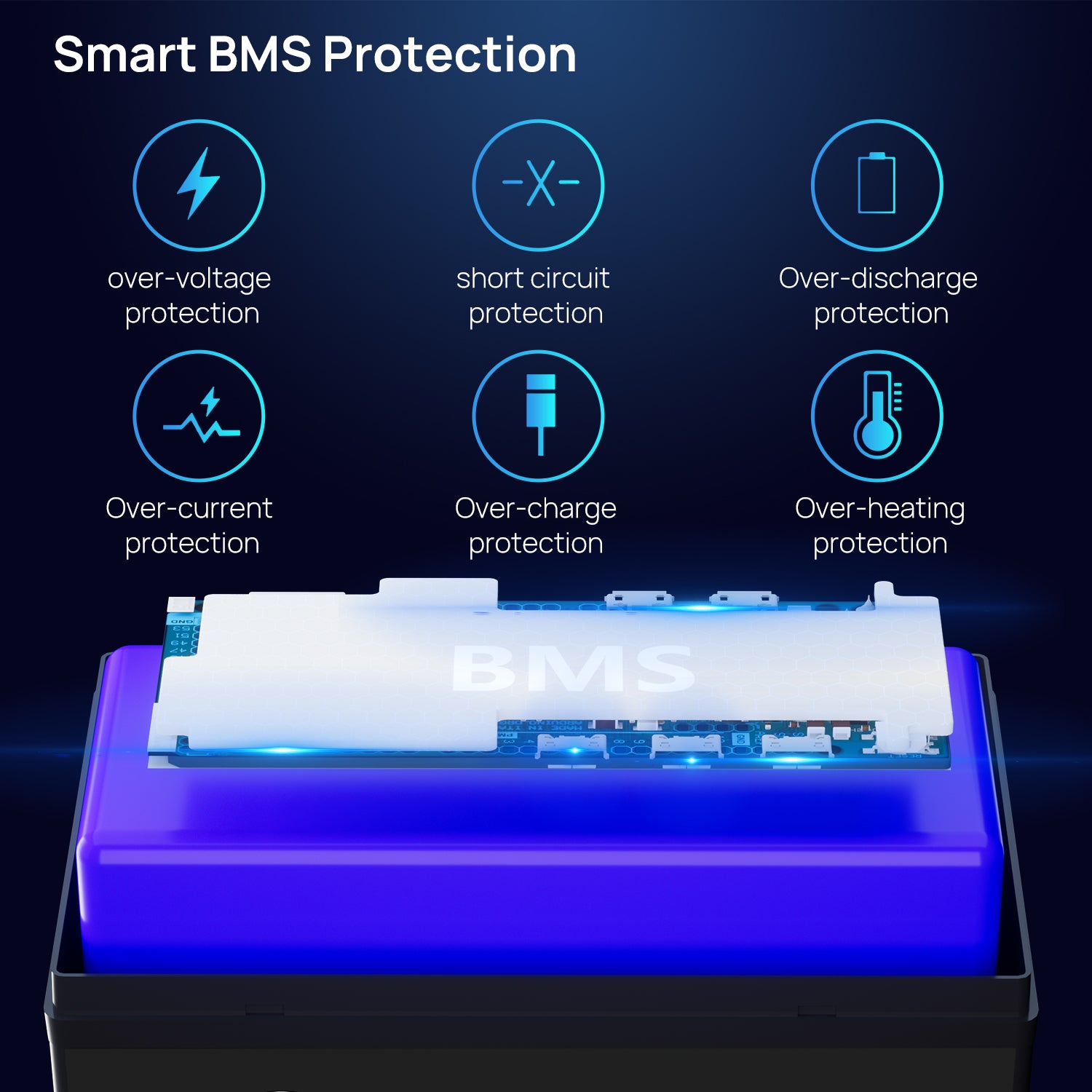 - 【Longer shelf life】Up to 10 years service life, up to 4000~15000 deep cycles. It can work at -20℃~60℃ and charge at -5℃~55℃. 4000 cycles @100% DOD, 8000+ cycles @80% DOD and up to 15000+ cycles @60% DOD. (The ideal data is based on proper usage).